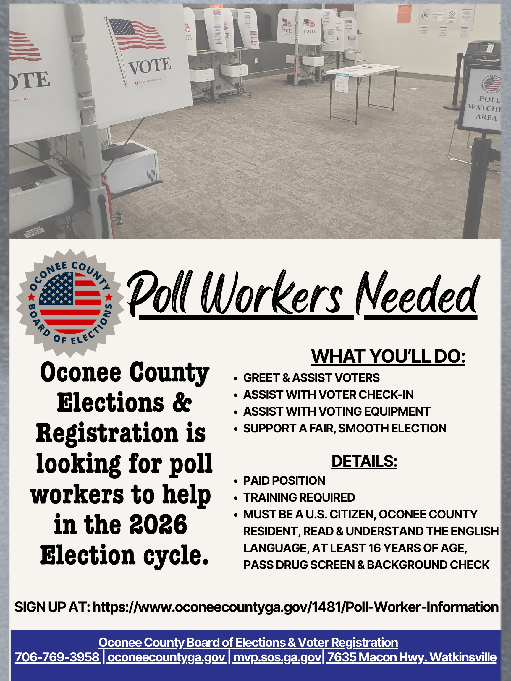 https://www.oconeecountyga.gov/1481/Poll-Worker-Information